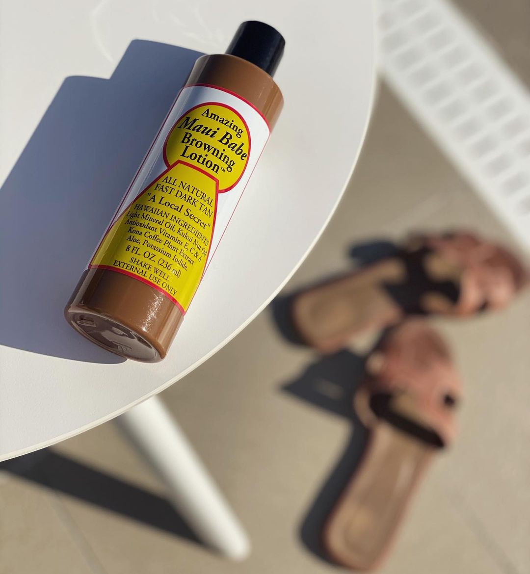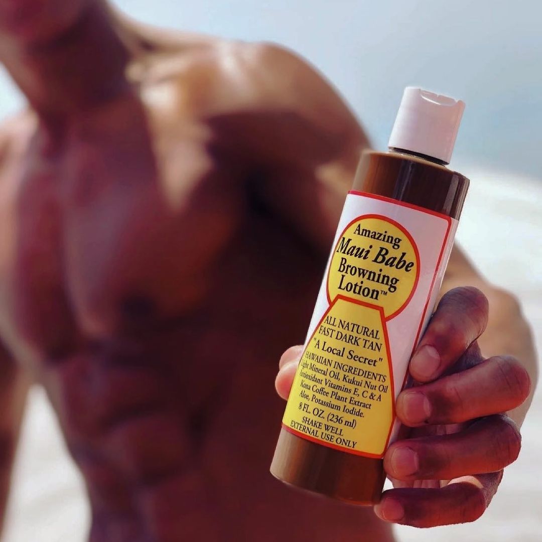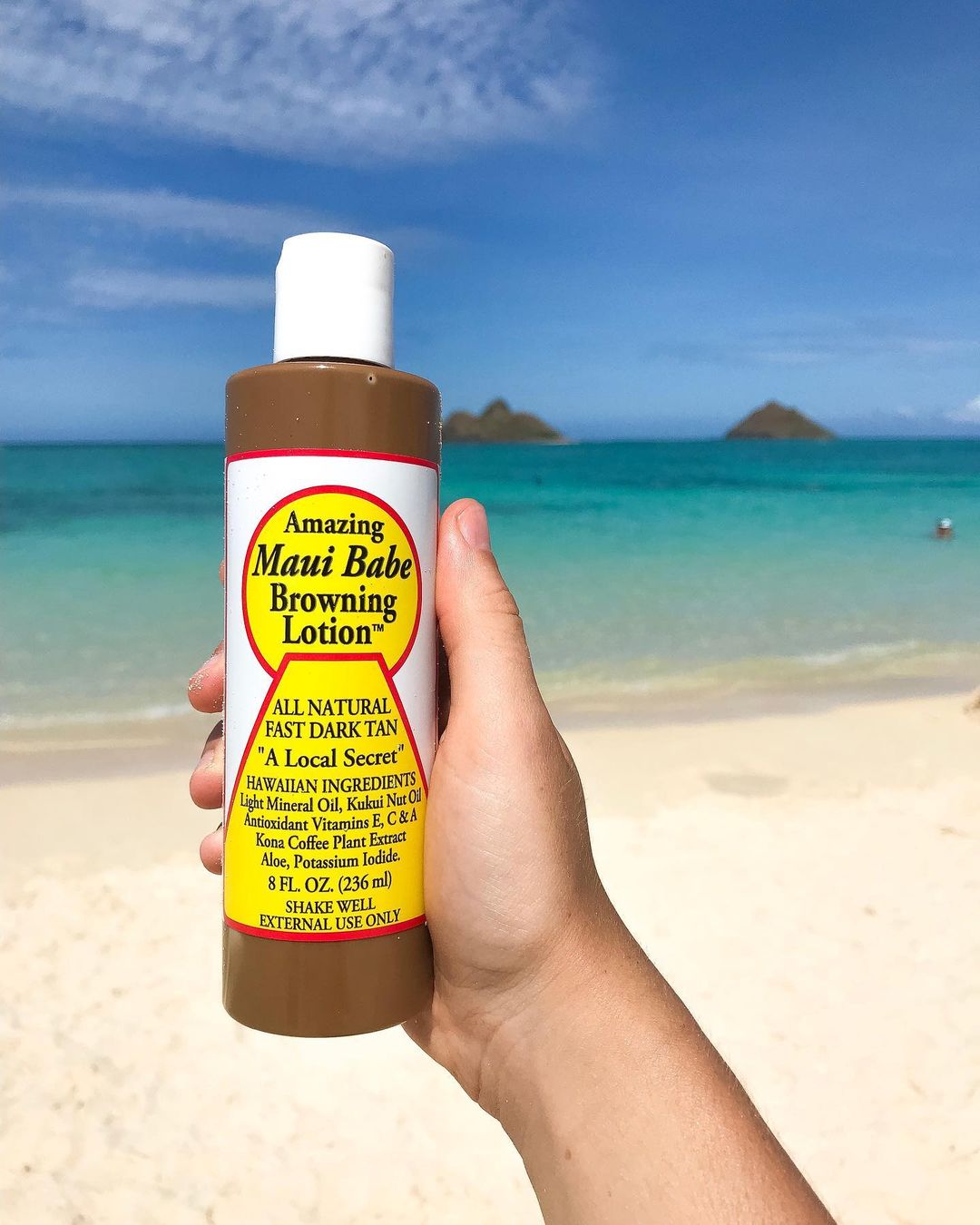 Amazing Maui Babe Browning Lotion will naturally give you a deep, dark, and rich tan. Eliminate long and endless hours in the sun with this tanning accelerant. The lotion’s formula is derived from a secret family recipe and mixed with natural Hawaiian ingredients, and it is safe for a wide range of skin types. Enjoy sunbathing with “A Local Secret.” We always recommend using SPF with our suntan lotions.