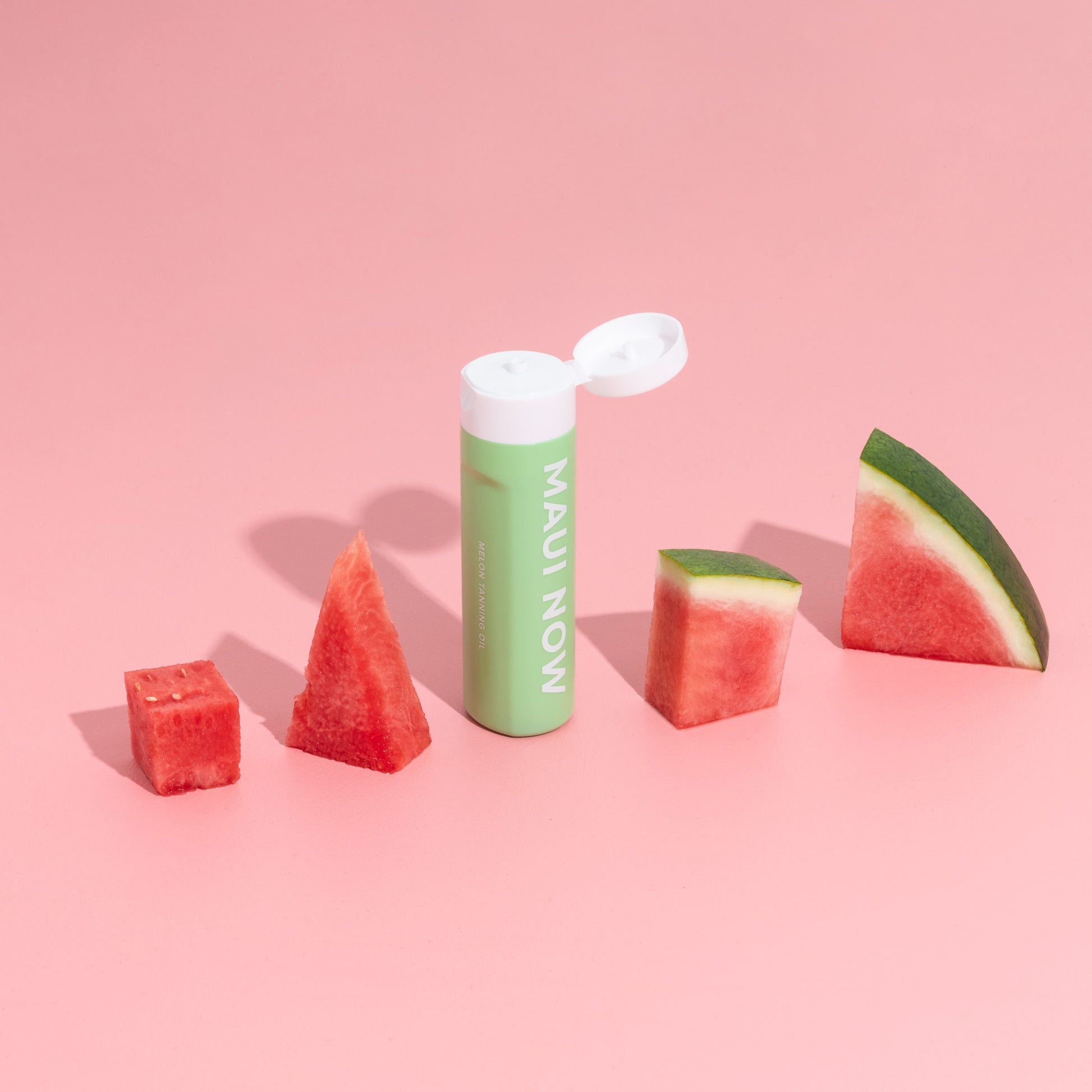 Use our Golden Glow tanning oil to stimulate melanin production and achieve a golden tan, and our Melon tanning oil to nourish and hydrate whilst tanning to extend your results.